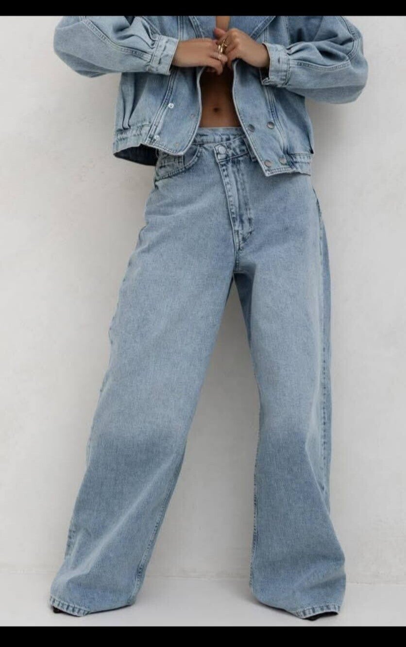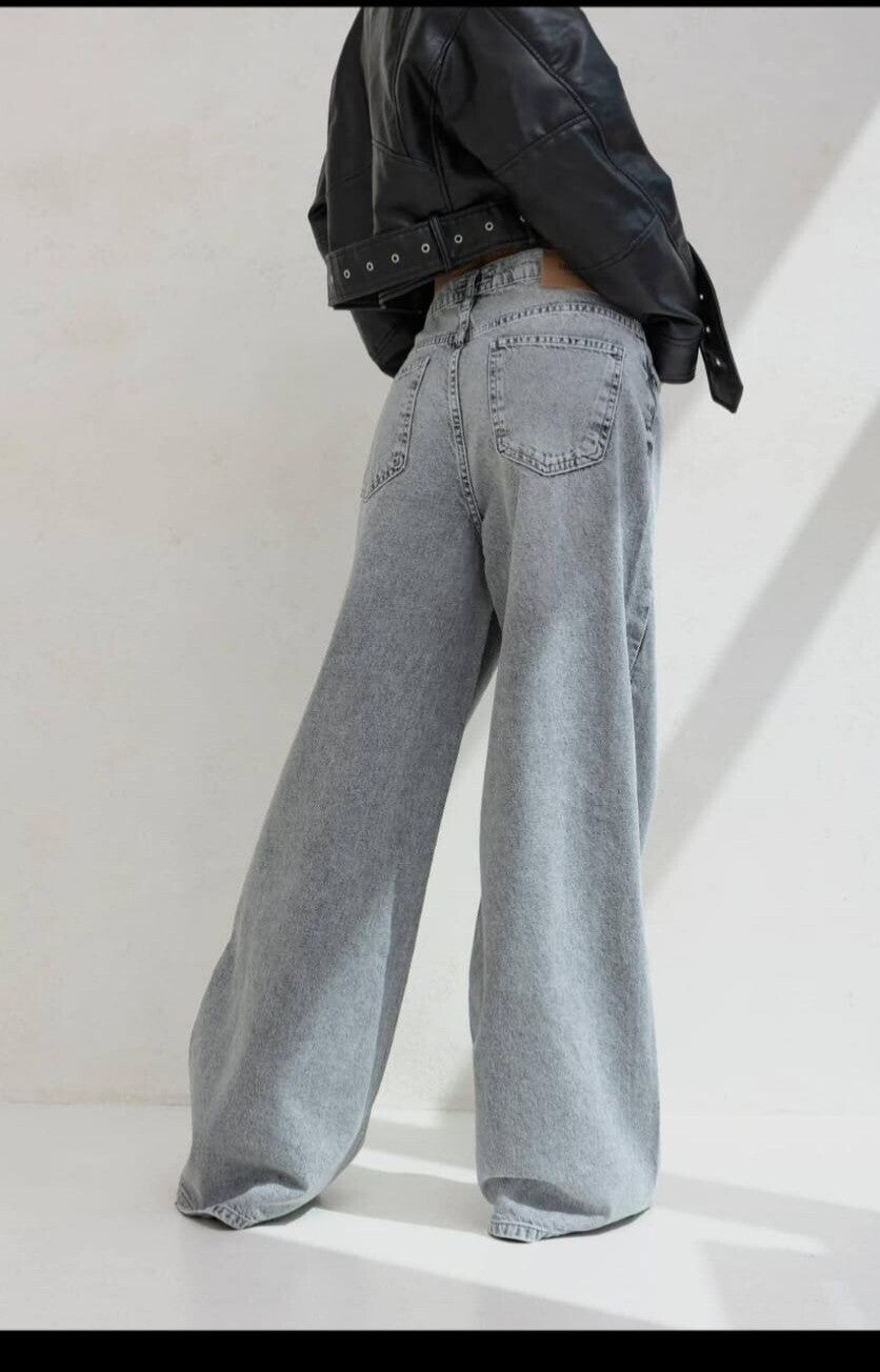 Unsere Baggy Jeans in grau und blau ist das Must-have für einen coolen Streetwear-Look. Mit ihrem extraweiten Schnitt und dem lässigen High-Waist-Style verleiht sie jedem Outfit eine entspannte, trendige Silhouette.