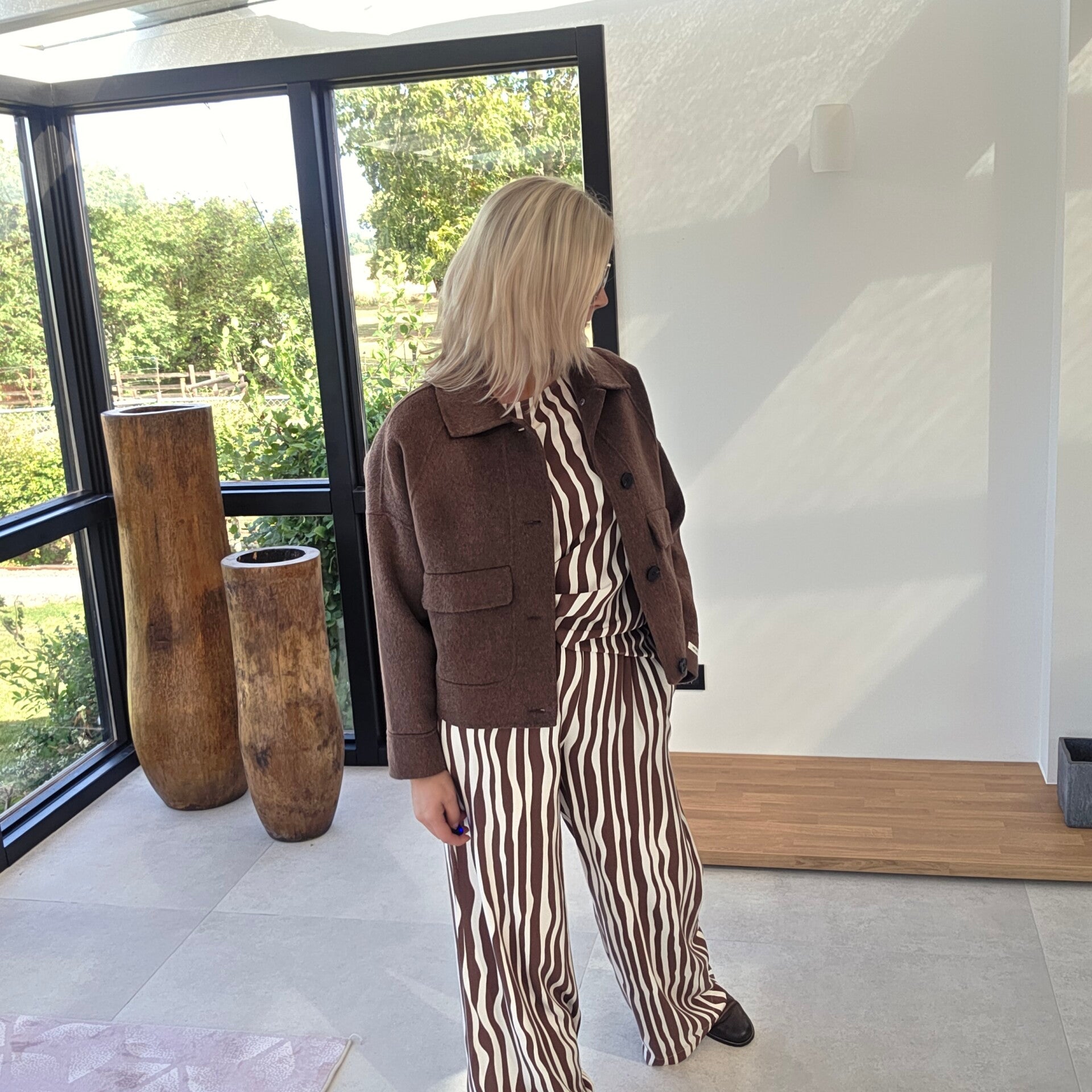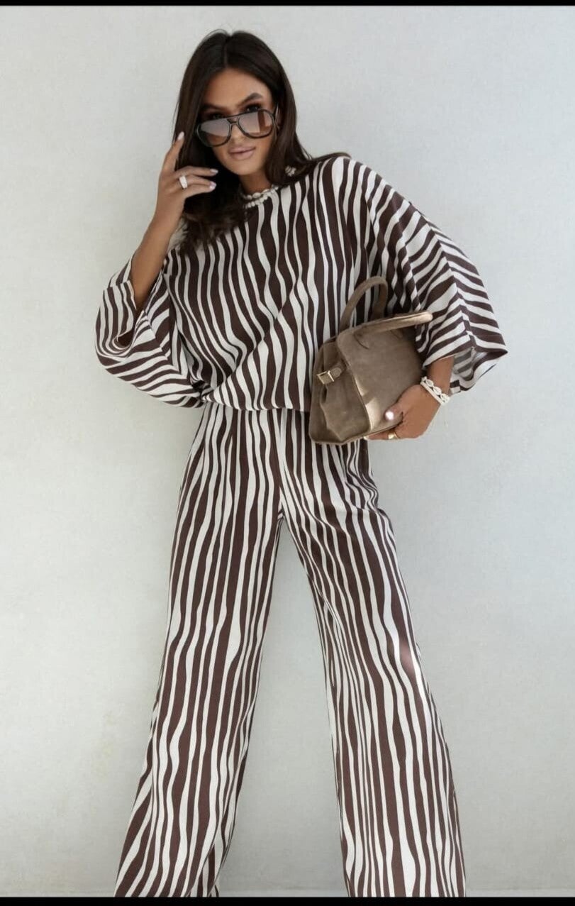 Zweiteiler mit Streifenmuster – Ecru & Braun