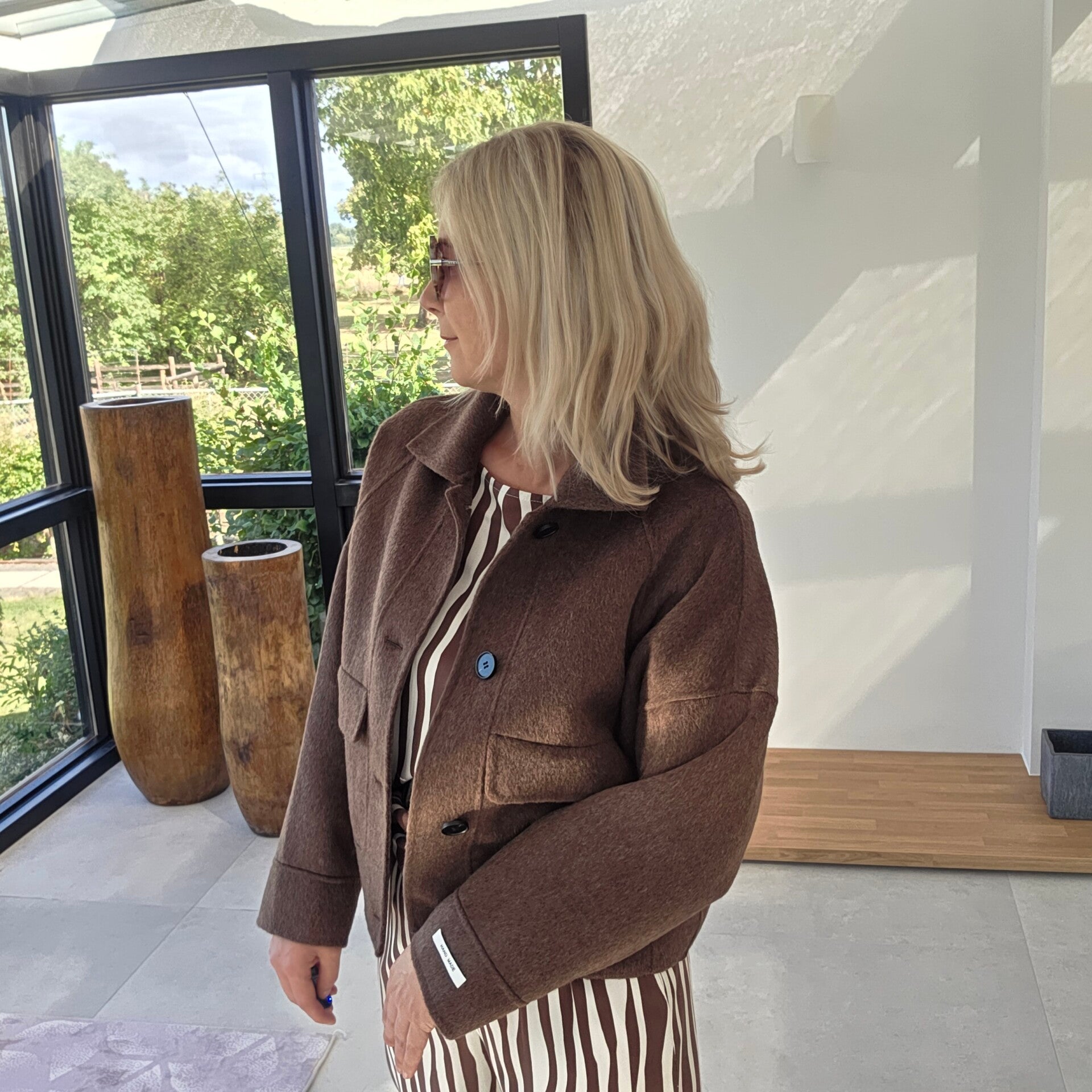 Handmade Wolljacke mit Kaschmir – Beige, Grau & Braun