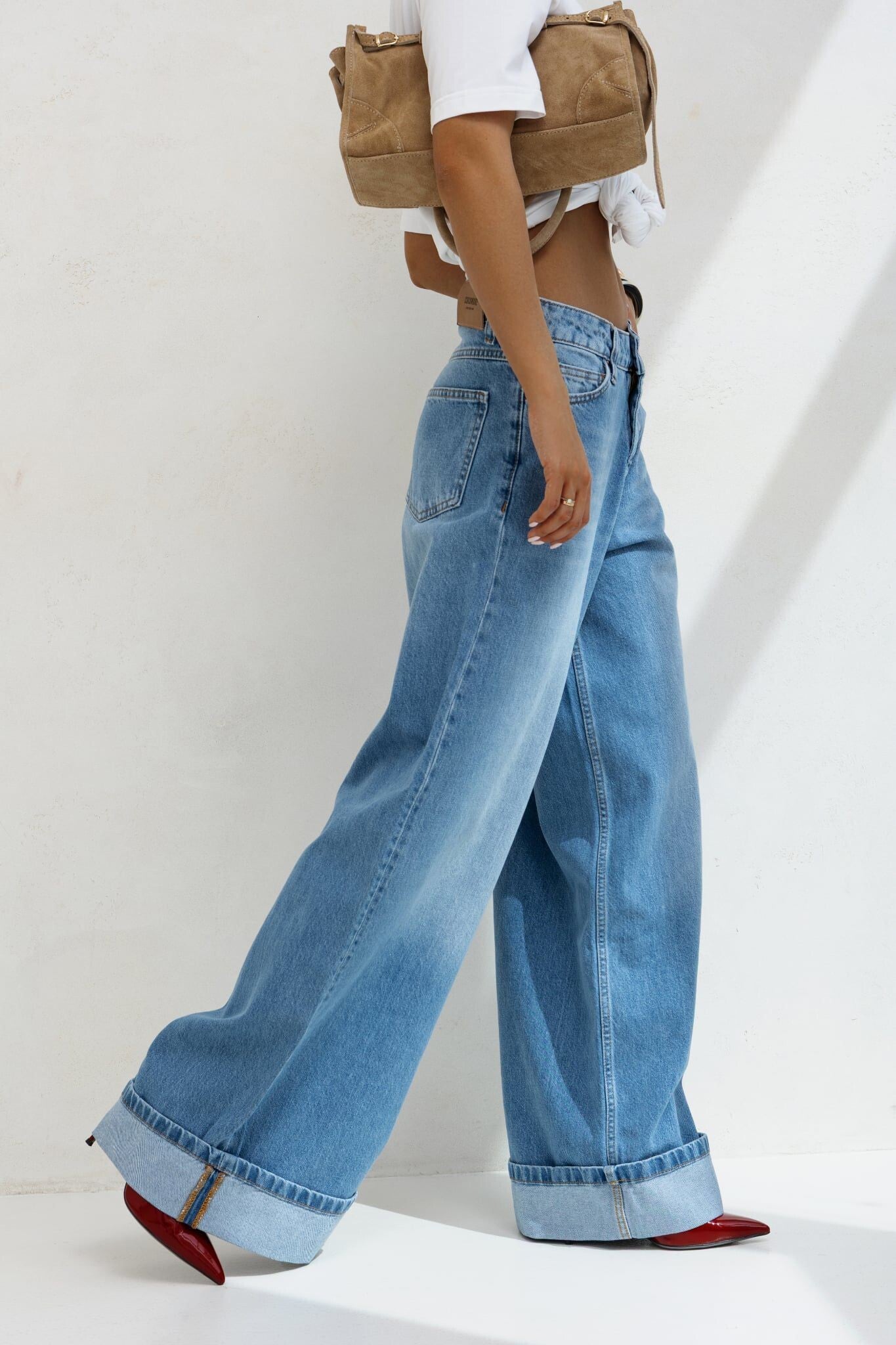Diese Wide Leg Jeans ist ein echtes Fashion-Statement und verbindet lässigen Komfort mit modernem Design. Der weite Beinverlauf und der fixierte Umschlag am Saum verleihen ihr eine coole, trendige Silhouette. Hergestellt aus 100% Baumwolle, bietet sie ein angenehmes Tragegefühl und eine langlebige Qualität.