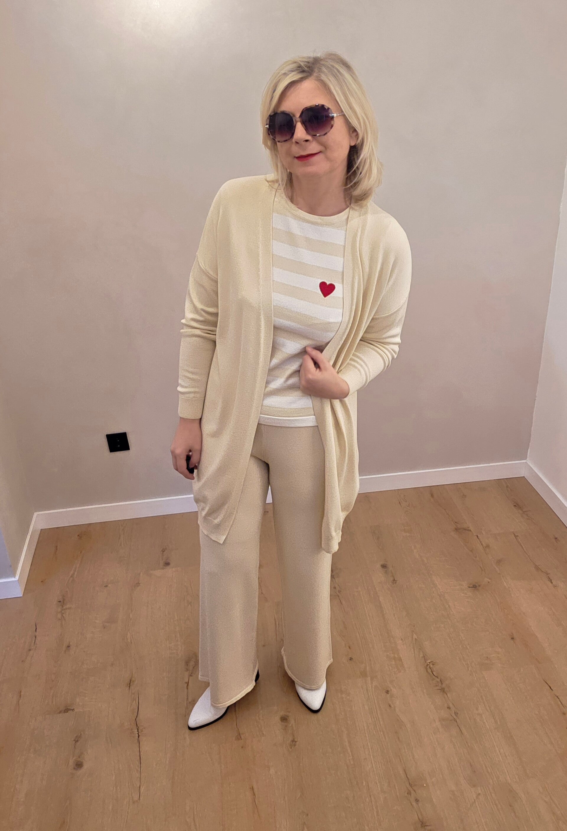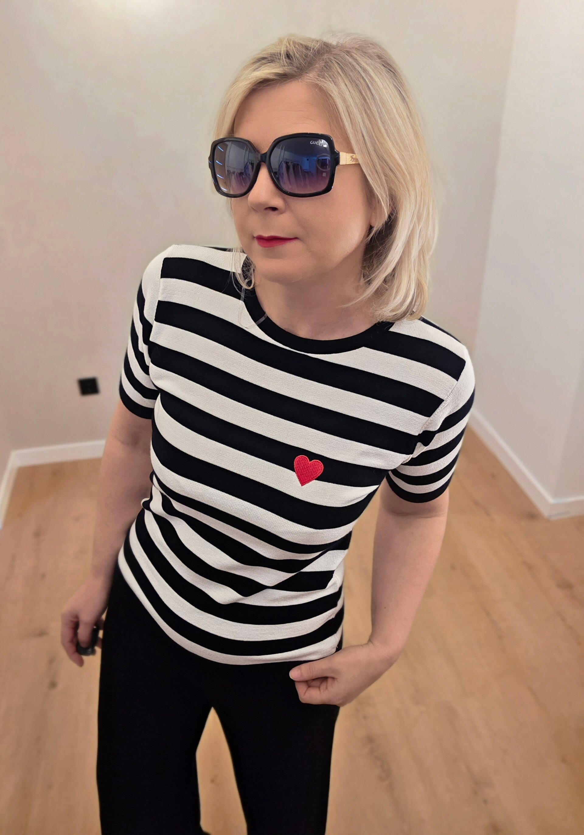 Gestreiftes Strick-T-Shirt mit Herz-Detail