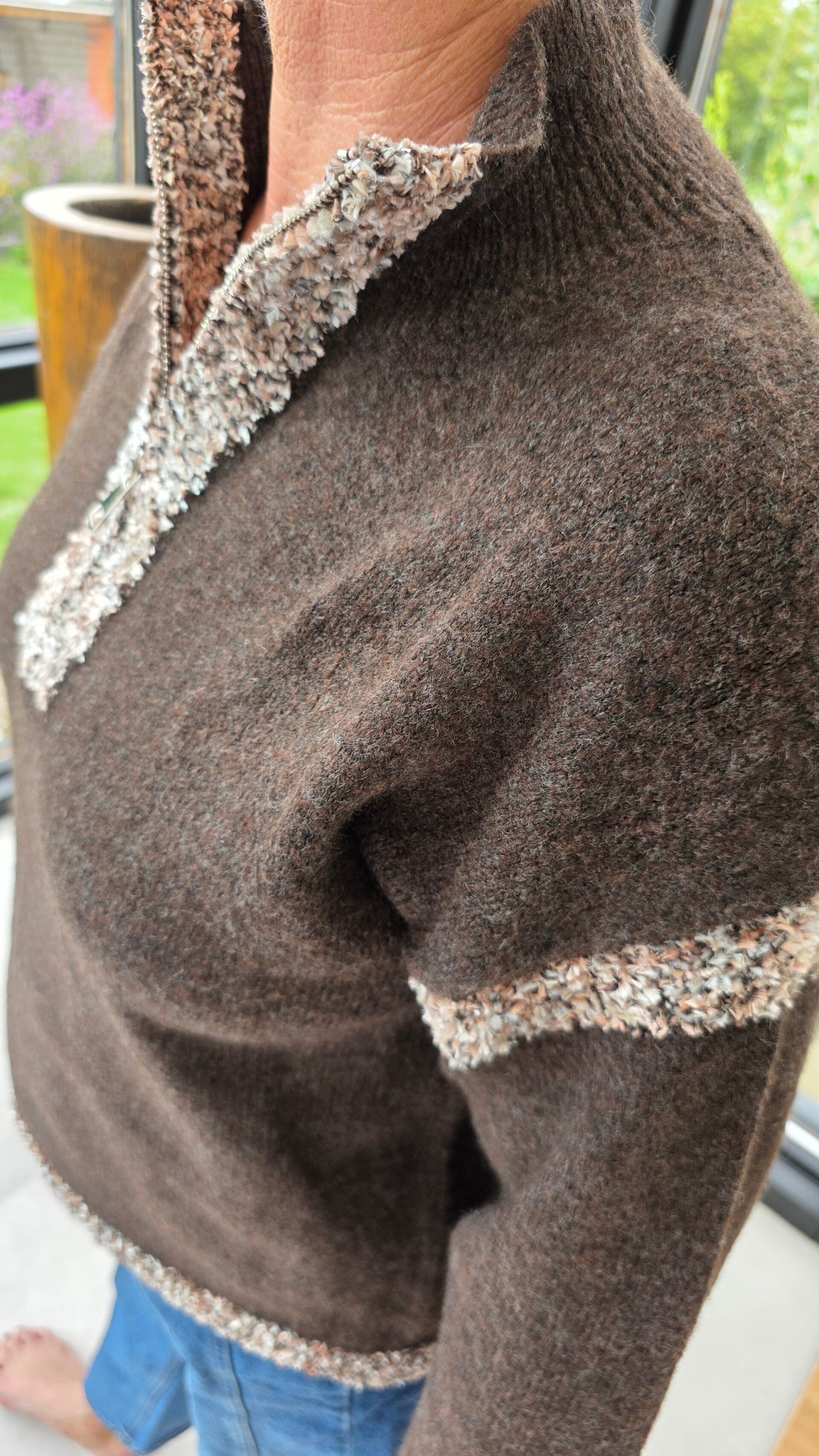 Brauner Pullover mit Reißverschluss am Hals – Einheitsgröße