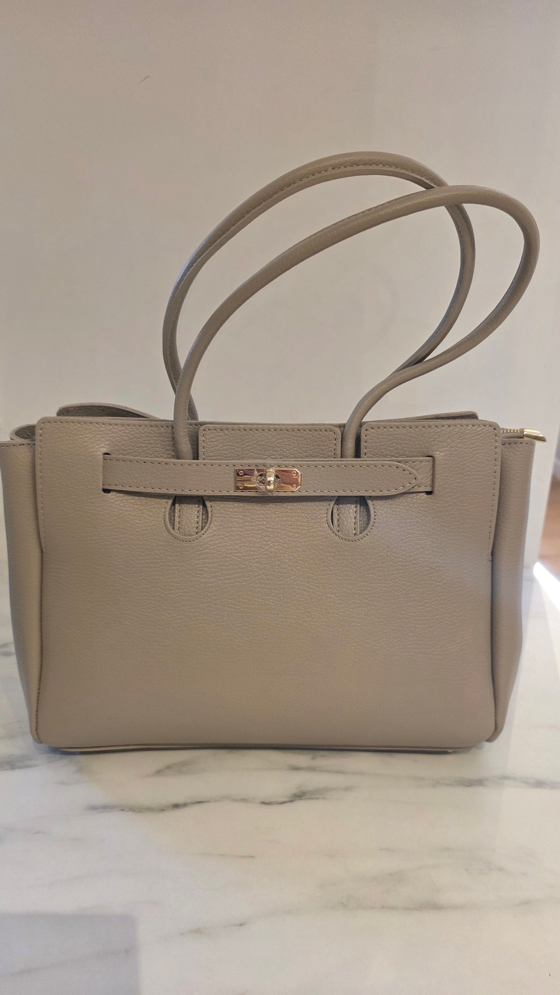 Stilvolle Handtasche aus hochwertigem echtem Leder mit feiner Struktur. Das zeitlose Design mit goldfarbenem Drehverschluss verleiht ihr eine elegante Note und macht sie zum perfekten Begleiter für Business und Alltag.