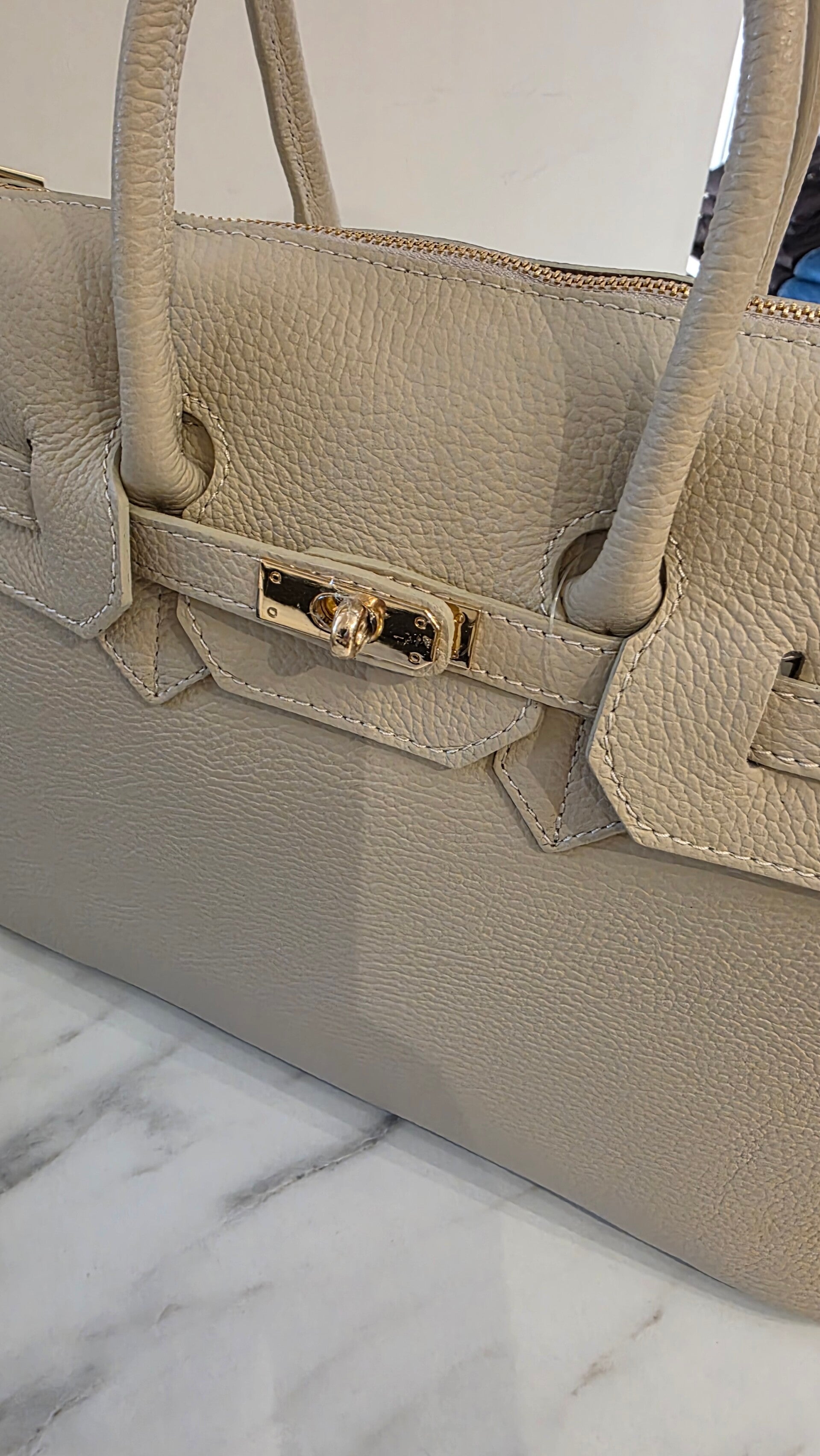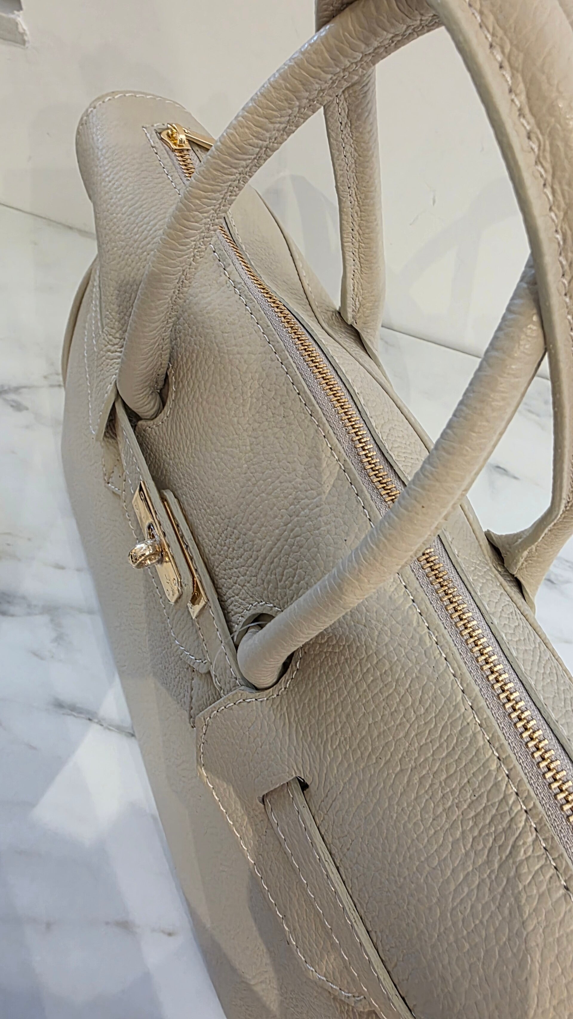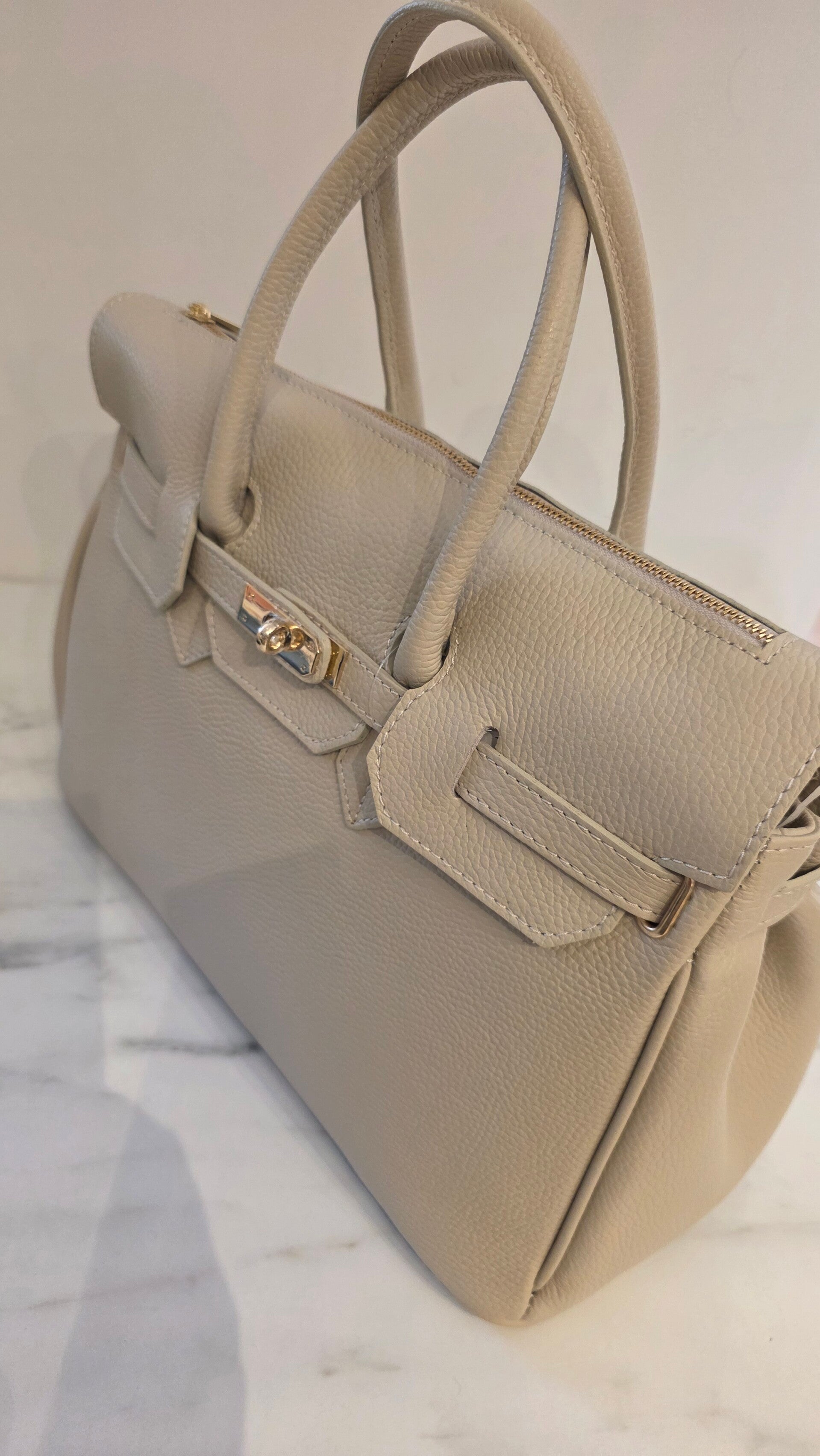 Elegante Handtasche aus hochwertigem echtem Leder mit feiner Struktur. Das klassische Design mit goldfarbenem stabilem Reißverschluss sorgt für Sicherheit und einen stilvollen Look.