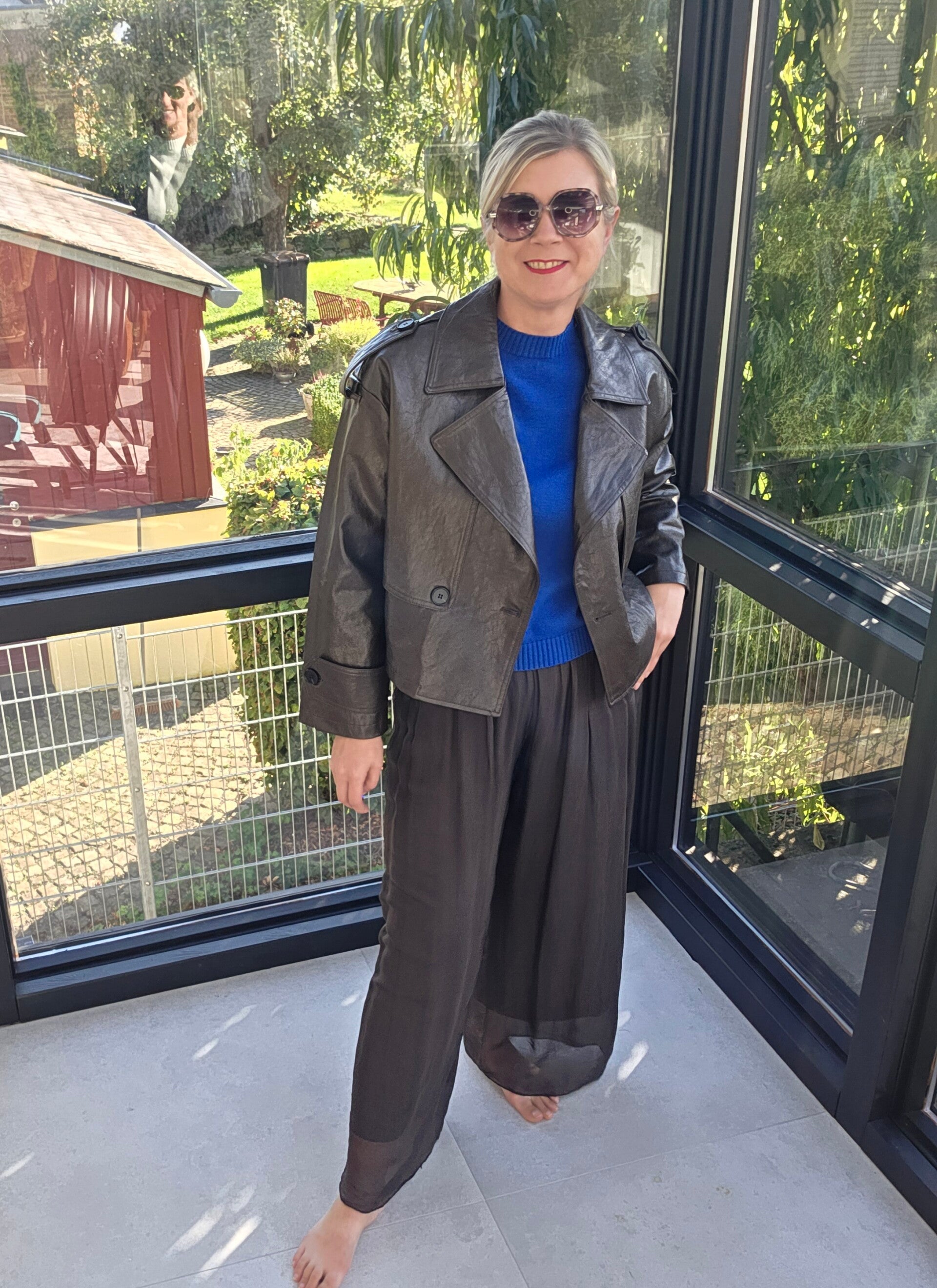 Stylische Oversized-Jacke aus hochwertiger Leder-Imitation. Leicht und weich im Griff, perfekt kombinierbar zu Jeans, Kleidern oder eleganten Stoffhosen. Ein echtes Trendteil für den modernen City-Look.