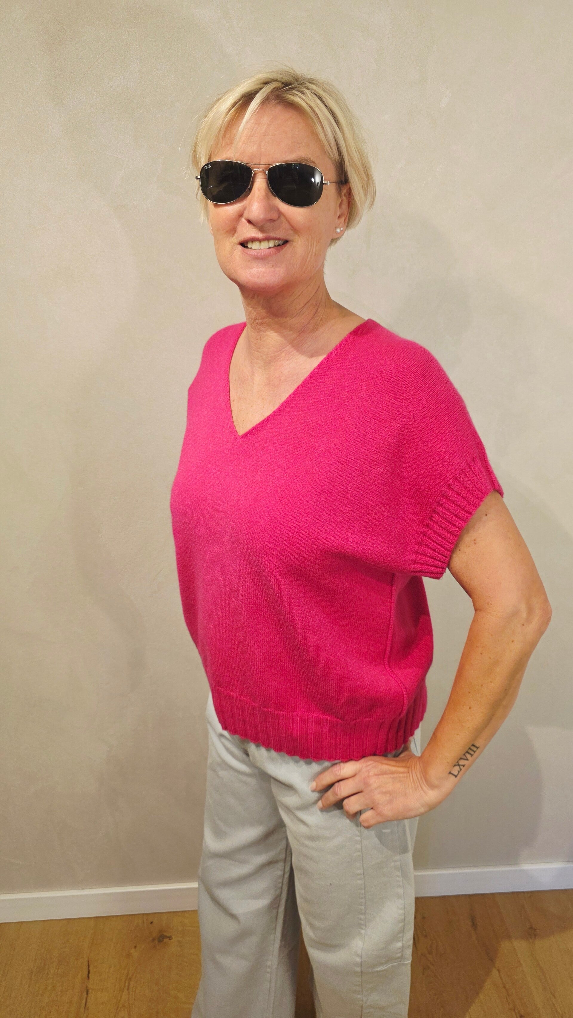 Ein vielseitiger Strickpullunder mit klassischem V-Ausschnitt – ideal zum Überziehen über Blusen, Shirts oder auch solo tragbar. Durch den weichen Materialmix fühlt er sich angenehm auf der Haut an und bietet gleichzeitig eine schöne Struktur. Perfekt als modisches Basic für jeden Tag.