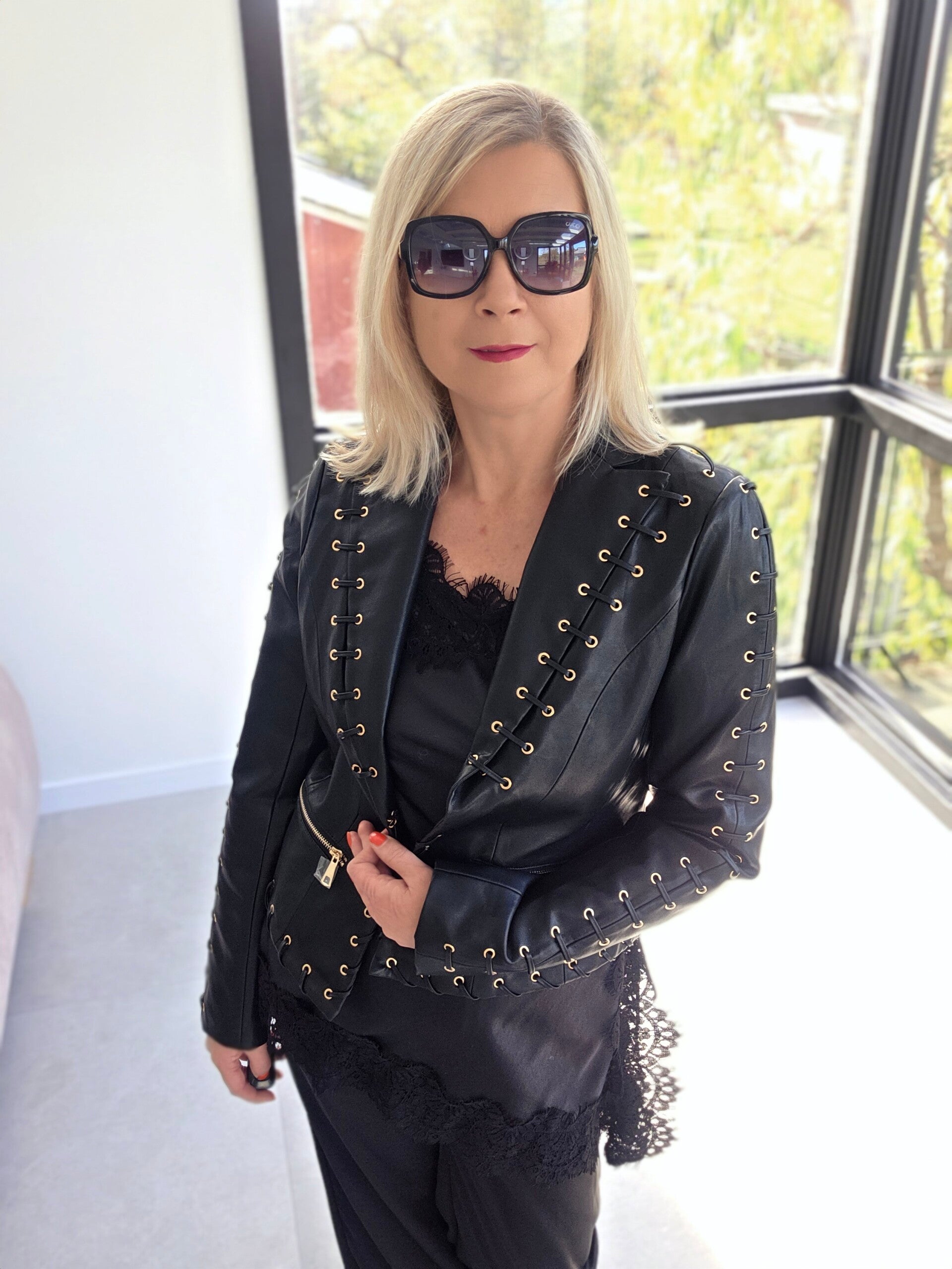 Kunstlederjacke „Lace-Up“ – mit Schnürdetails