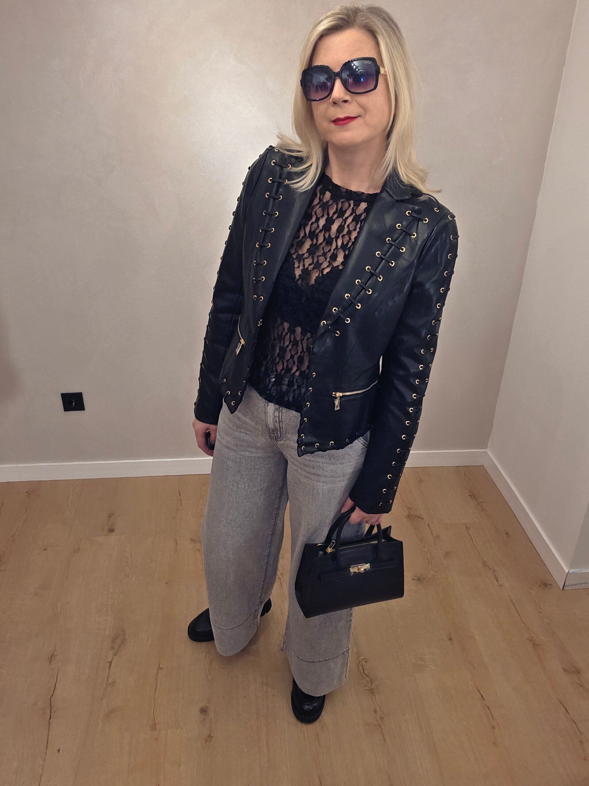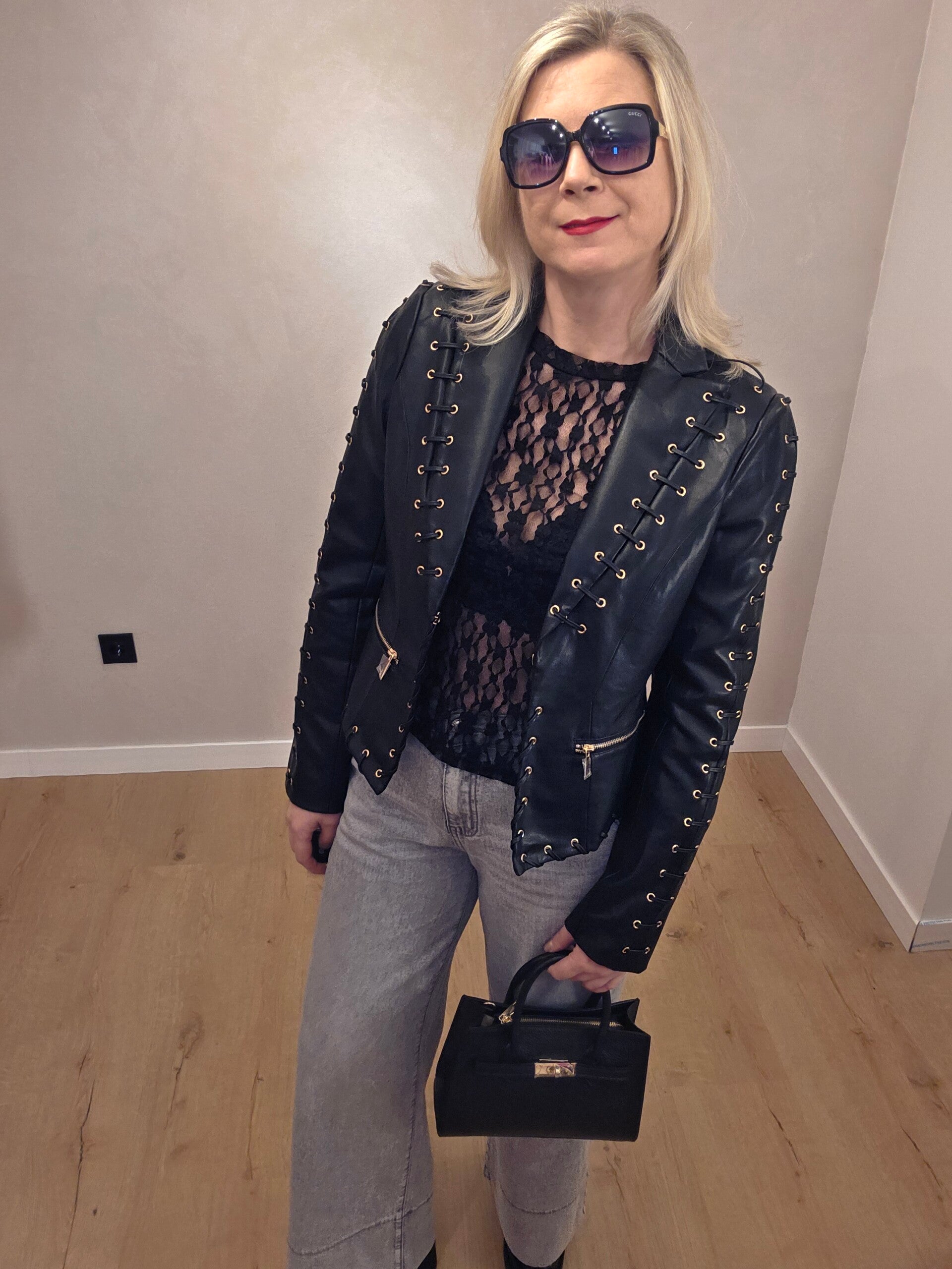 Edgy It-Piece aus hochwertigem, veganem Kunstleder. Markante Schnürungen mit goldfarbenen Ösen sorgen für einen modernen, rockigen Look.