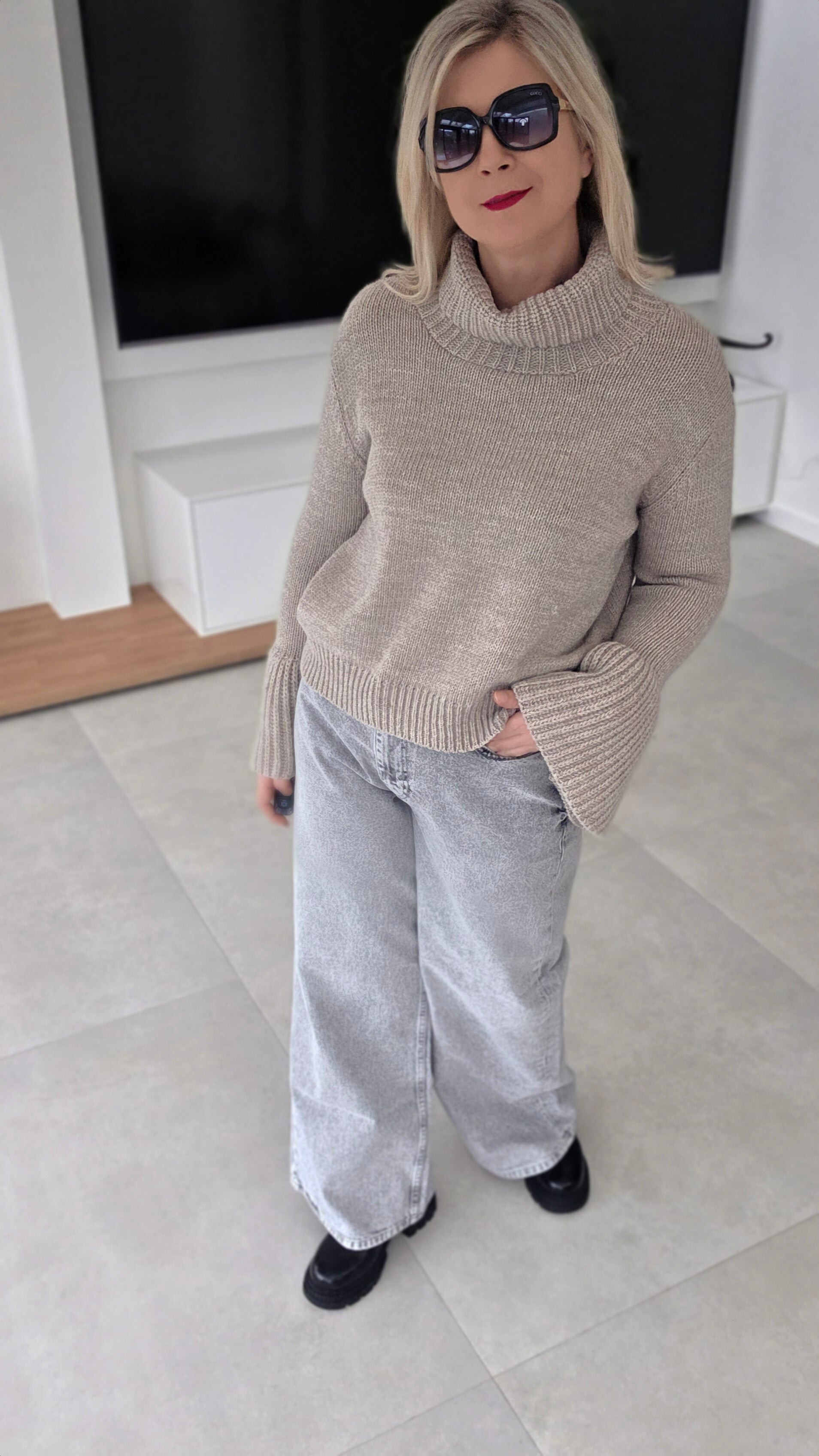 Modischer, kuscheliger Pullover mit Rollkragen und auffälligen, leicht ausgestellten Ärmeln. Der weiche Strick sorgt für hohen Tragekomfort und eine angenehme Wärme.