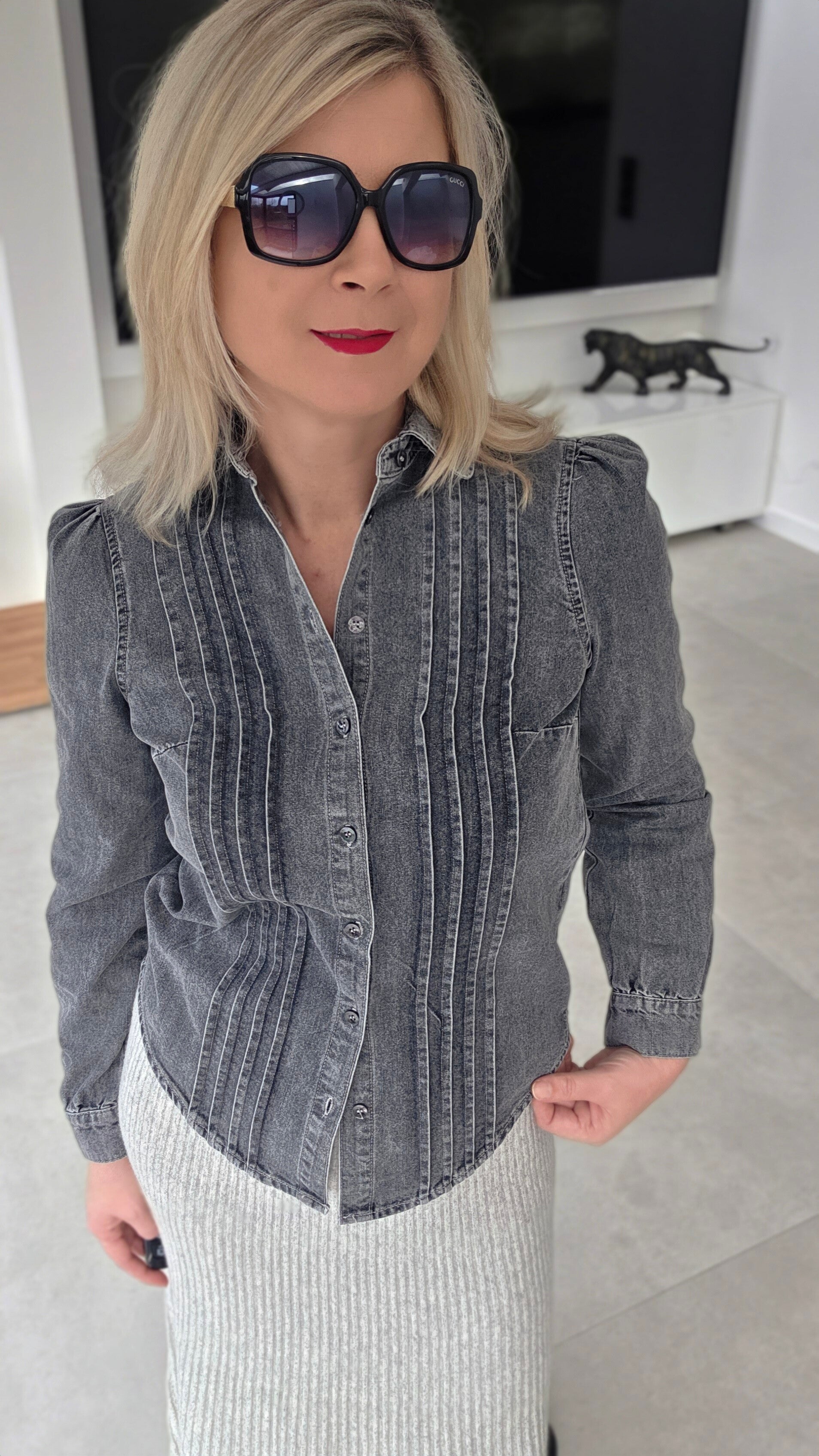 Design: Jeanshemd mit feinen Biesen