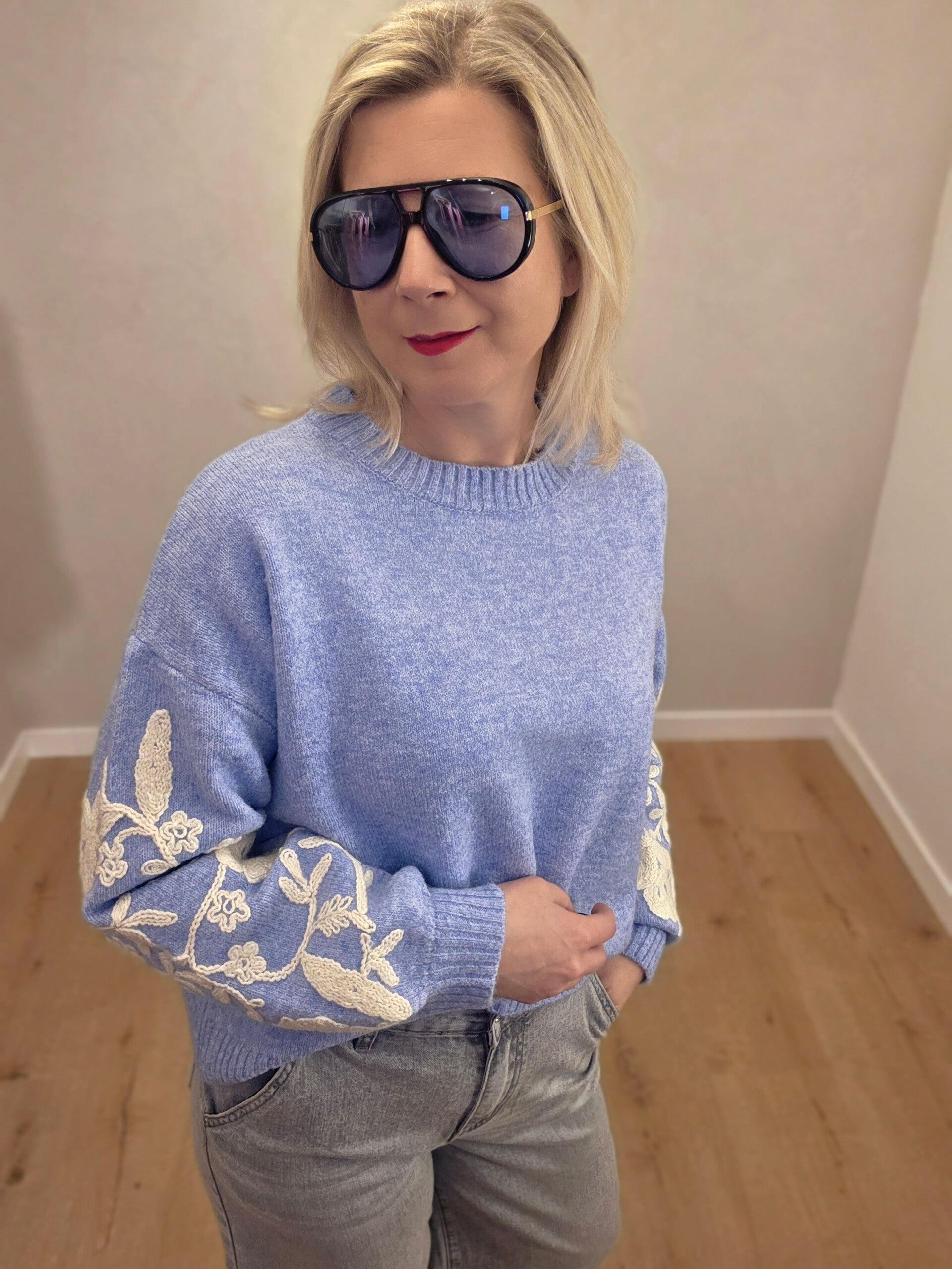 Strickpullover mit Stickerei an den Ärmeln
