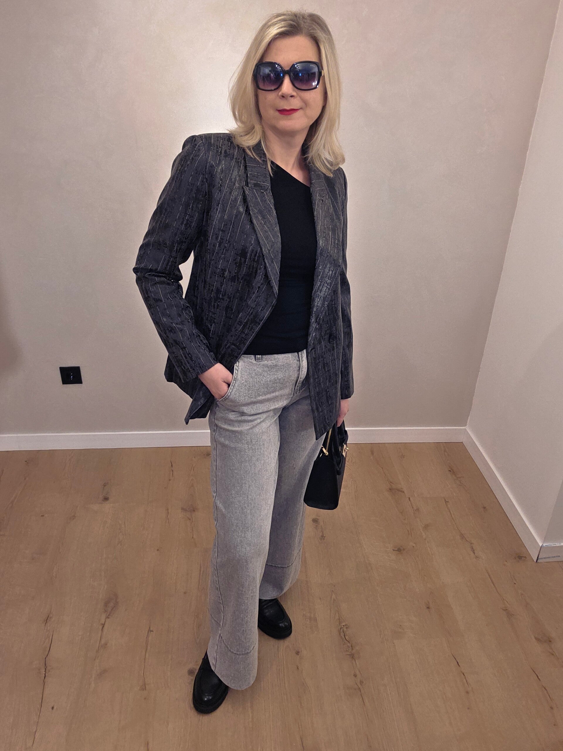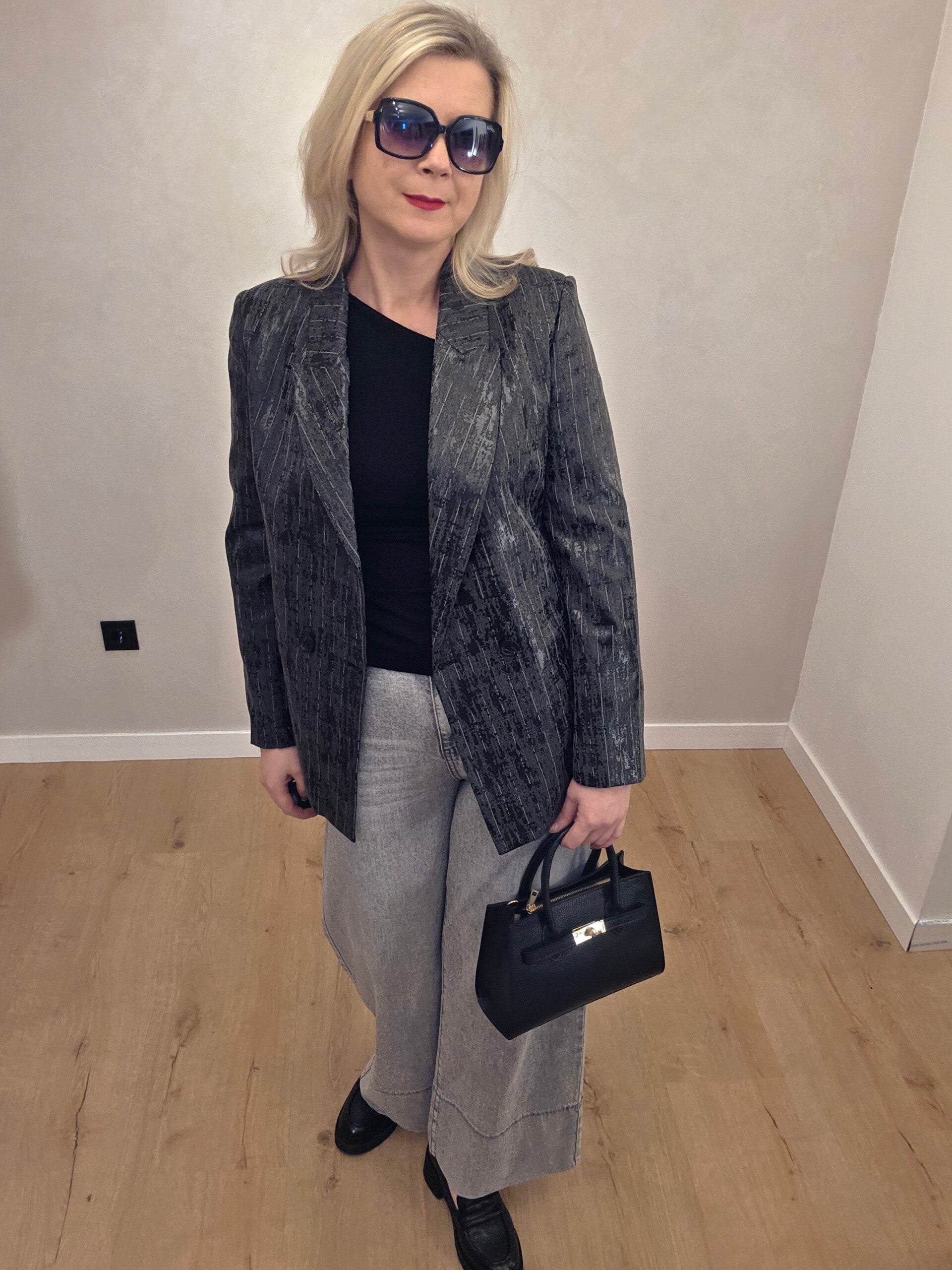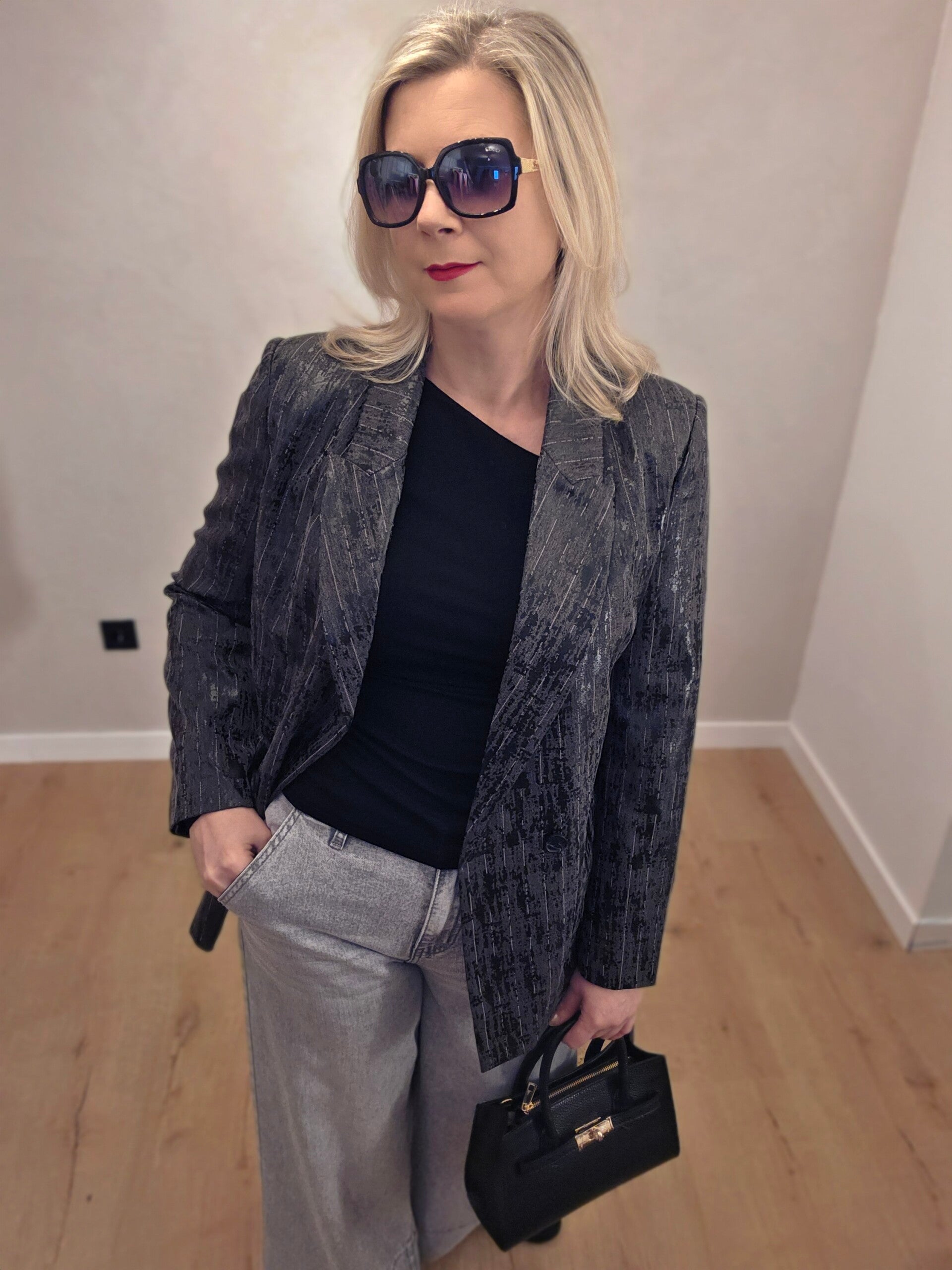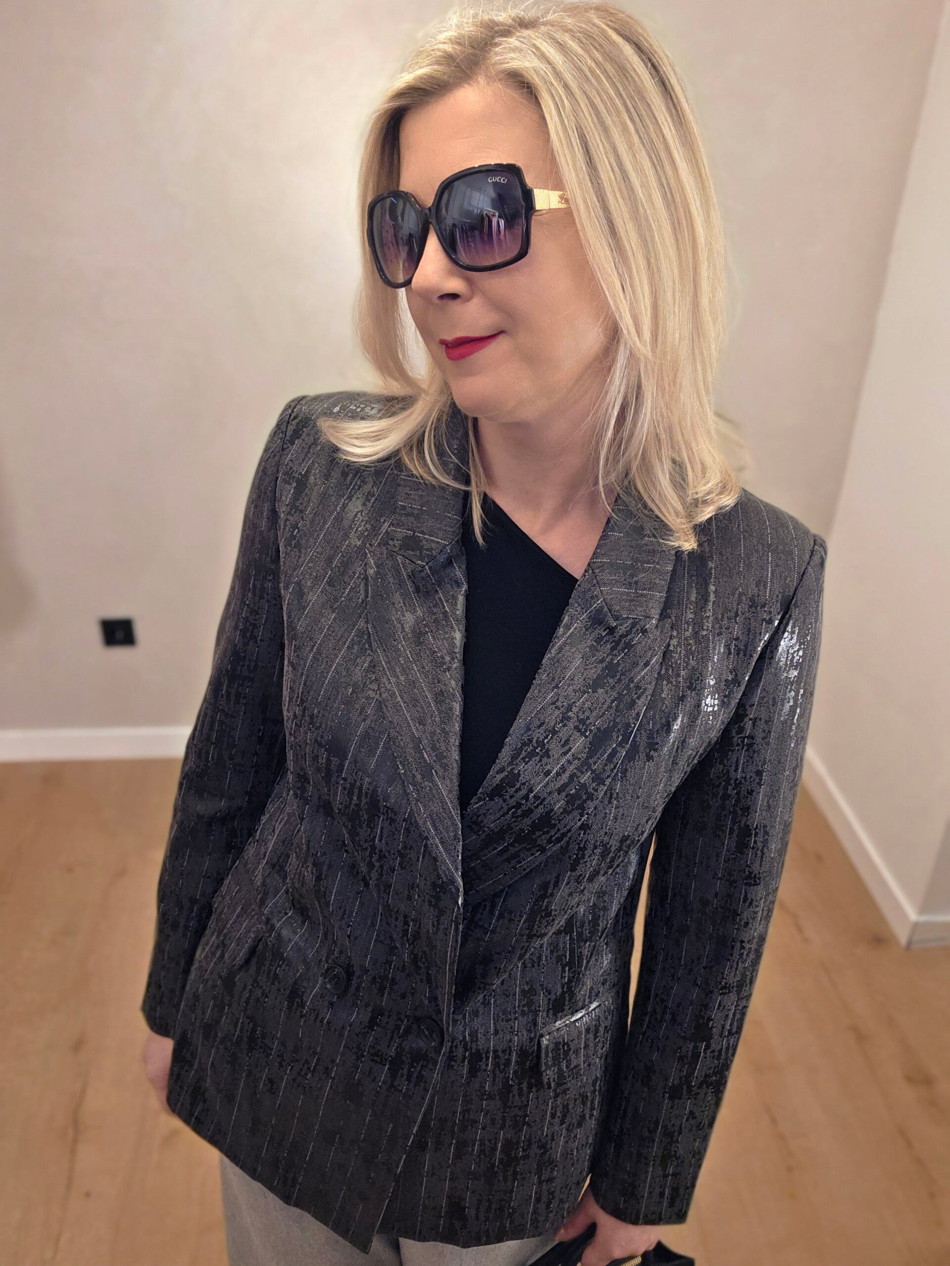 Stilvoller Blazer mit edlem Struktur- und Glanzeffekt. Das besondere Muster verleiht dem Modell einen modernen, eleganten Charakter – perfekt für Business, besondere Anlässe oder stilvolle Abend-Looks.