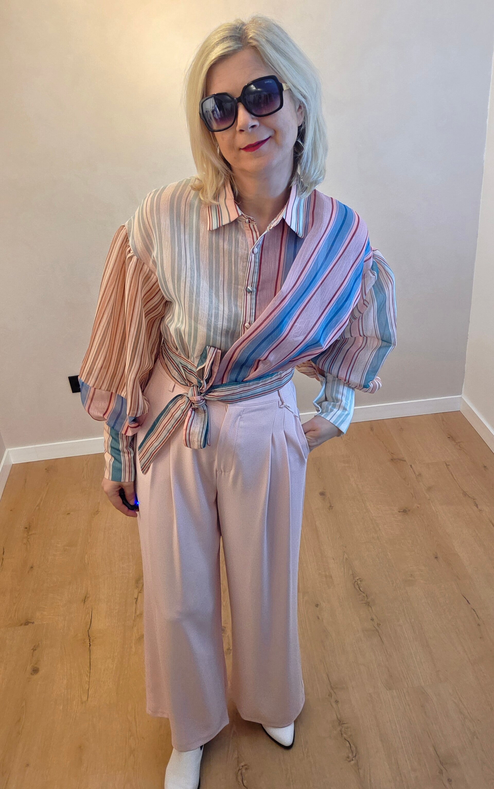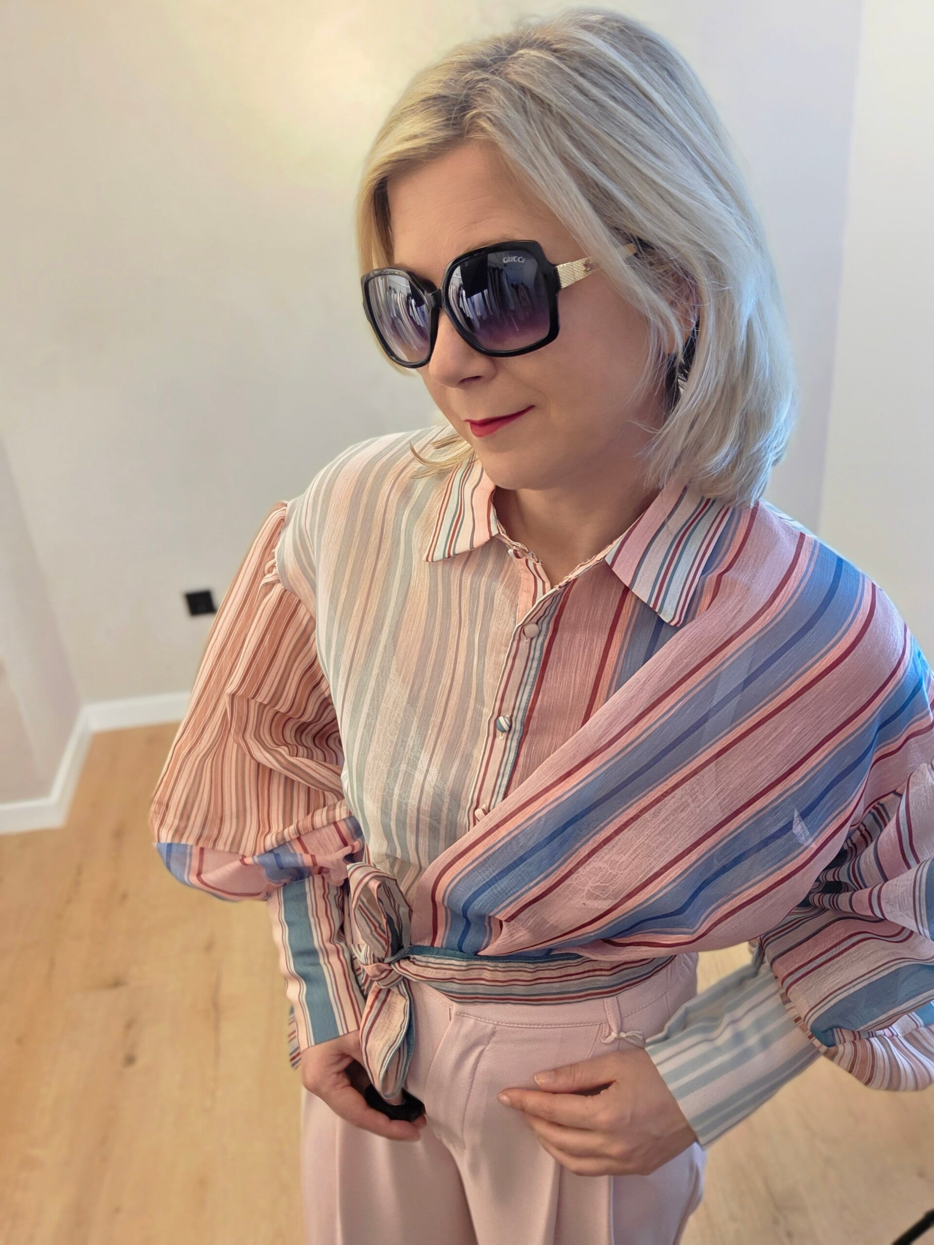 Kurze Bluse mit Streifen und Bindegürtel