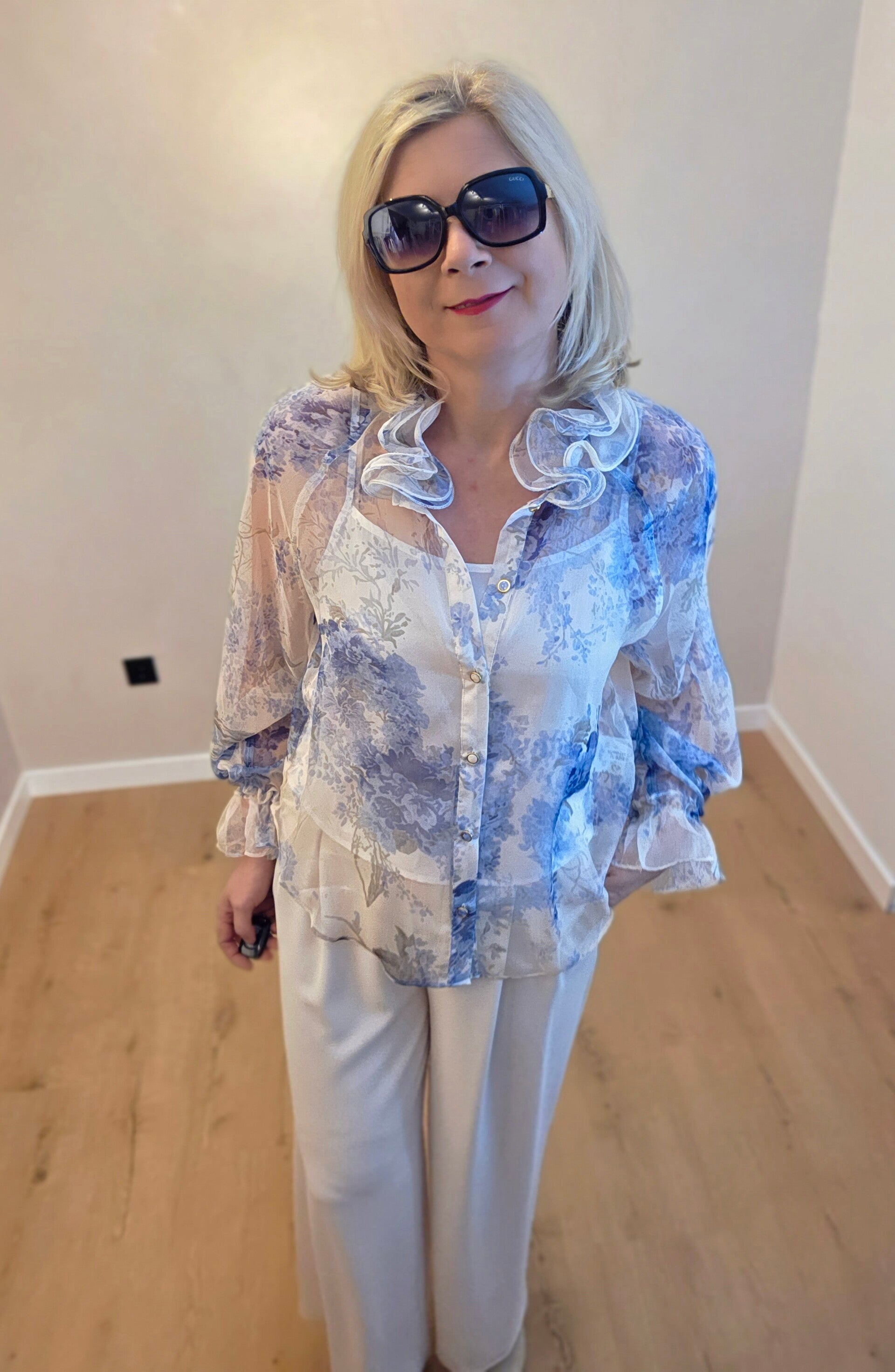 Moderne Damenhose aus fließendem, angenehm leichtem Stoff. Der lockere Schnitt sorgt für hohen Tragekomfort und eine elegante Silhouette. Die Hose lässt sich perfekt mit Blusen, Tops oder Blazern kombinieren und eignet sich sowohl für den Alltag als auch für elegante Anlässe.