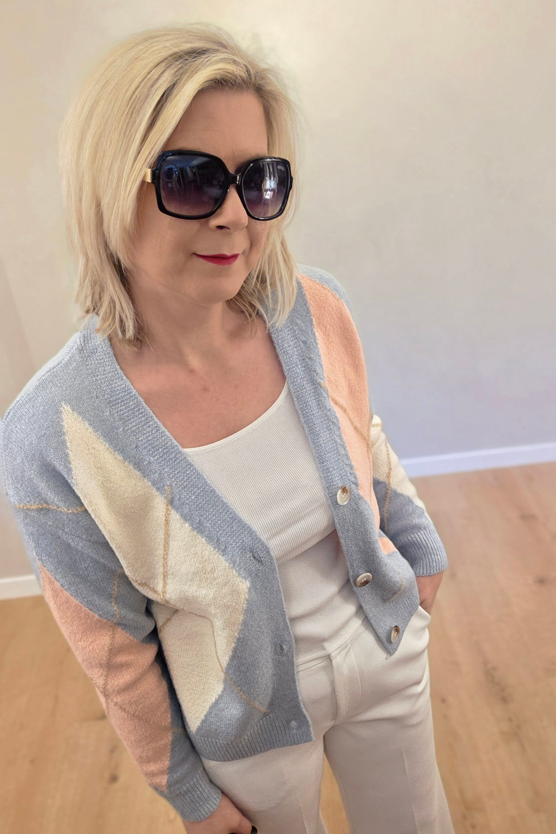 Moderne und bequeme Strickjacke mit stilvollem Muster und dekorativen Knöpfen. Der weiche, angenehme Stoff sorgt für hohen Tragekomfort und macht die Jacke zu einem perfekten Begleiter für viele Outfits – sowohl elegant als auch casual.