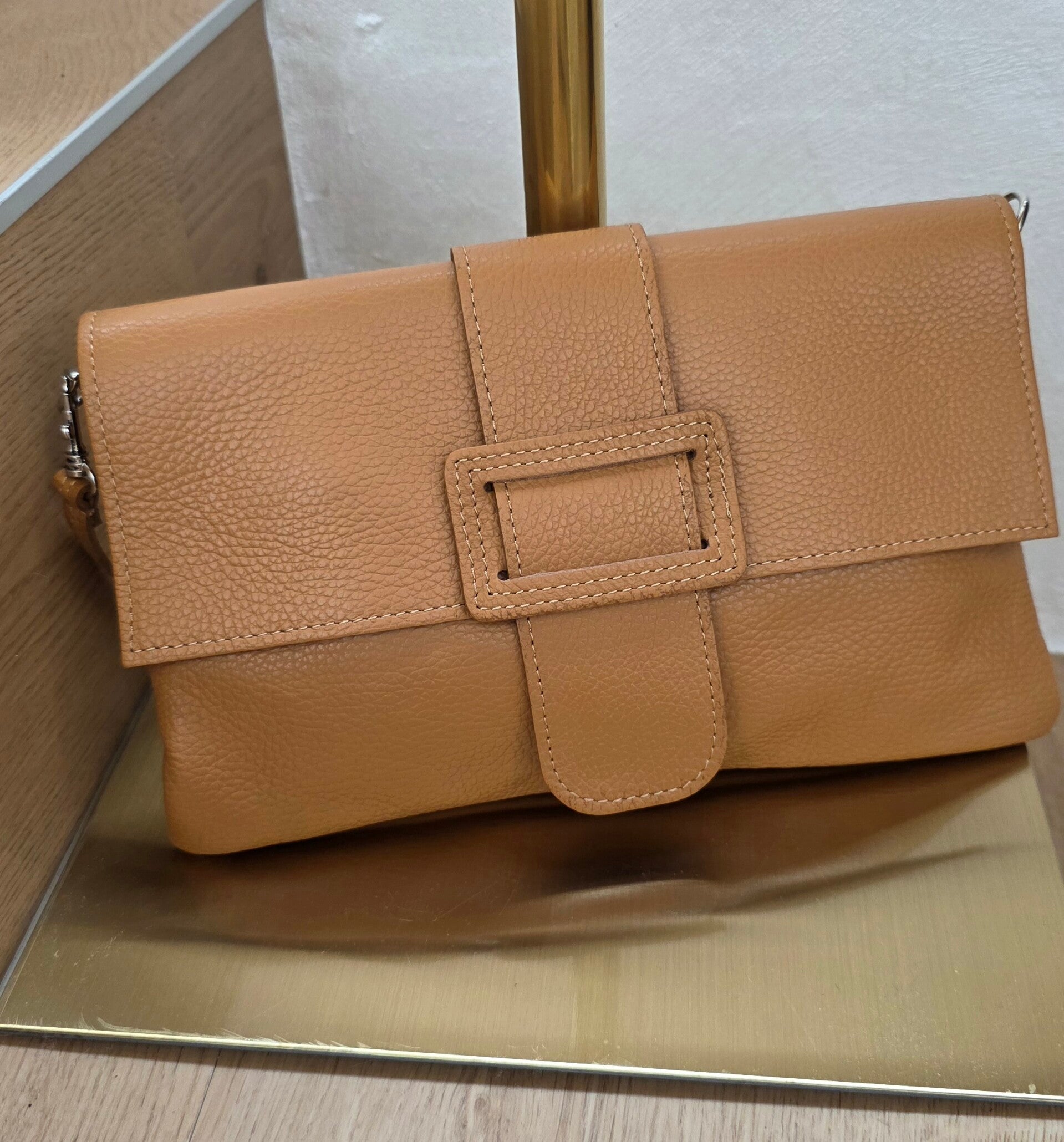 Modische Clutch aus hochwertigem Leder mit elegantem Verschluss und schlichtem, zeitlosem Design. Die Tasche ist perfekt für elegante Outfits, besondere Anlässe oder auch für den Alltag.