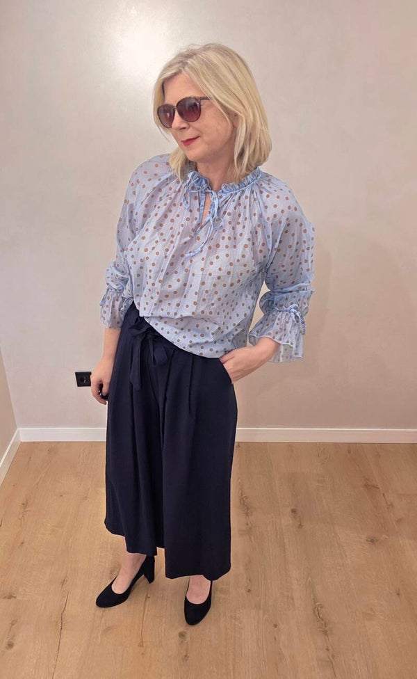 Diese stilvolle Culotte überzeugt mit ihrem lockeren, fließenden Schnitt und einem besonders angenehmen Tragegefühl. Der elastische Gummibund sorgt für optimalen Sitz und macht die Hose zum perfekten Begleiter für jeden Tag.