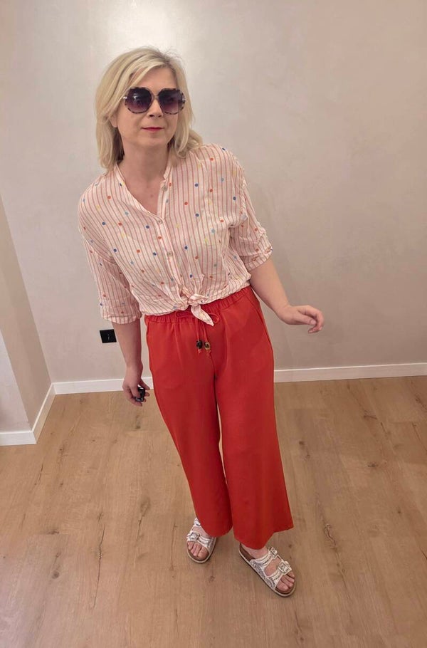 Ob lässig geknotet oder klassisch getragen – diese Bluse ist vielseitig kombinierbar und perfekt für warme Tage, Urlaub oder elegante Alltagslooks.